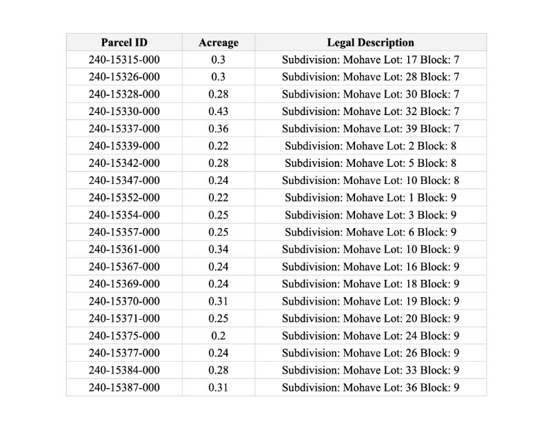 APN/Parcel ID: See Photo For Parcel Details