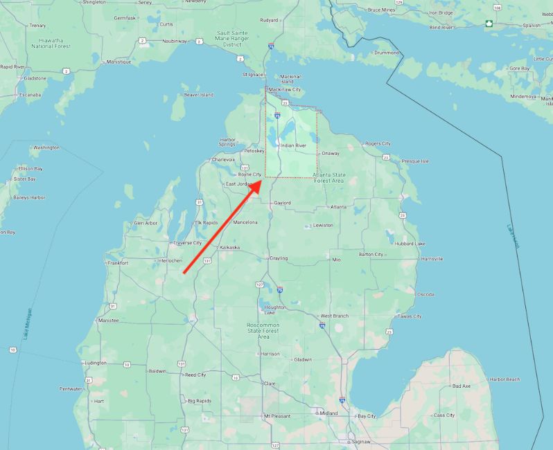 Approximate Coordinates: 45°14'25.7"N 84°34'03.1"W