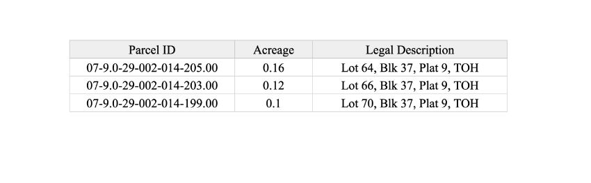 Parcel ID/Legal Description: See Photo for Parcel IDs and Legal Descriptions