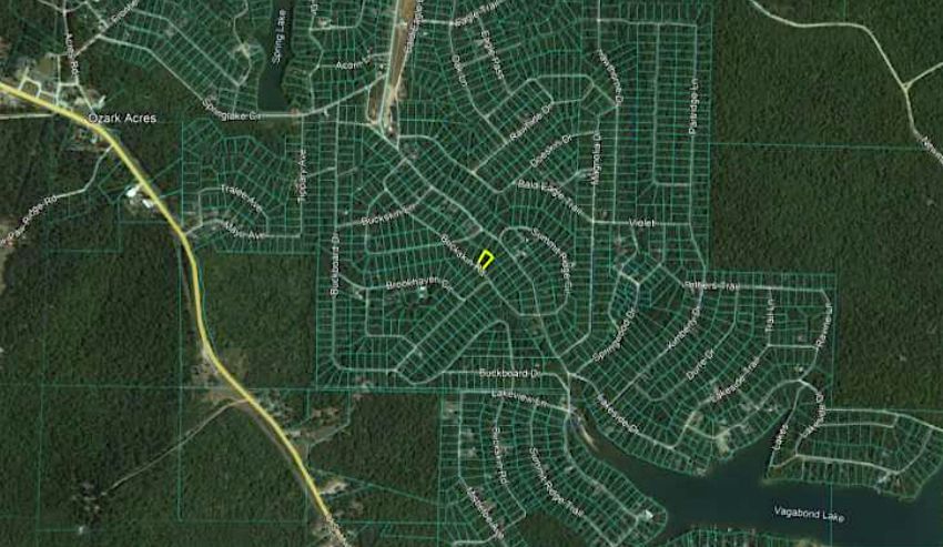 At just over a quarter acre, this lot sits on Buckskin Road, only half a mile to the Ozark Acres Clubhouse and Vagabond Lake. A home may be constructed on this lot as long as the house size is a minimum of 600 square feet and complies with the zoning set forth in Ozark Acres Bill of Assurance: Brookhaven Addition.